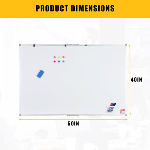 - [Durable Aluminum Frame Construction] Built with a strong aluminum frame and reinforced ABS corners, this magnetic whiteboard resists warping and bending. Protective packaging ensures it arrives in perfect condition, ready for long-term use, [Extra-Large Writing Surface] The spacious 60 x 40 inch dry erase surface provides ample room for brainstorming, lesson planning, scheduling, and presentations. The smooth, non-ghosting coating wipes clean easily for repeated use, [Magnetic Multi-Function Surface] The magnetic board securely holds notes, documents, photos, and calendars with standard magnets. Ideal for meetings, teaching, home organization, and collaborative work environments, [Easy & Secure Wall Mounting] Includes complete mounting hardware and sturdy hanging hooks for quick installation. Can be mounted vertically or horizontally to fit your space while ensuring stable, wobble-free performance, [Professional & Versatile Use] Perfect for offices, classrooms, conference rooms, and home workspaces. Combines functionality, durability, and clean design to enhance productivity and organization