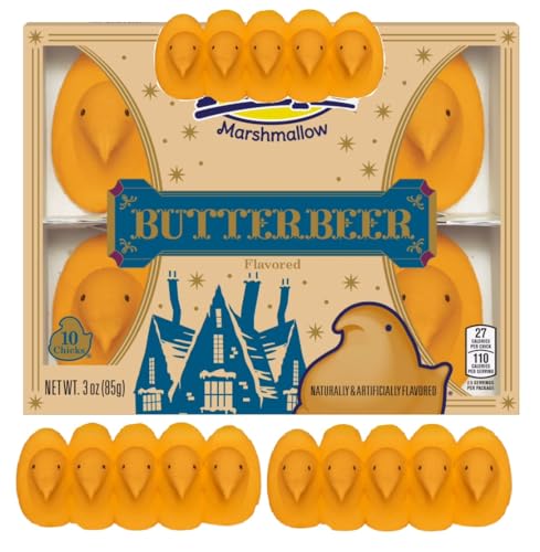 - 10 COUNT MARSHMALLOW CHICKS – Includes 10 butterbeer flavored Easter marshmallow chicks, perfect for spring baskets and seasonal sharing, EASTER BASKET READY – Classic chick-shaped marshmallows ideal for Easter baskets, candy bowls, dessert tables, and spring parties, EXPRESS YOUR PEEPSONALITY – These chicks are perfect for basket building, eating, sharing, baking, crafting, and more, PERFECT FOR DECORATING – Great for baking, cupcake toppers, dessert trays, and festive Easter displays, SPRINGTIME FAVORITE – A colorful and playful Easter candy that adds fun to holiday celebrations