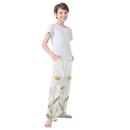 FLildon Pajama Pants 6-14 Years Elastic Waist Elegant Herbs Wildflowers Lounge Pajama Pants, A383, Large: 11-12Y