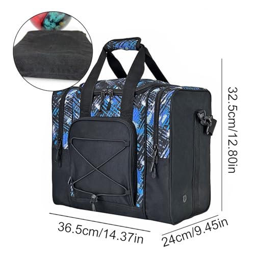 - Enhanced Protection: Our Padded Bag not only protects but also provides maximum cushioning to your bowling ball compartment with a padded ball holder, keeping it secure from scratches and damages during transportation., Enhanced Comfort: Our bowling ball bag reduces shoulder pressure and ensures a comfortable fit with adjustable shoulder strap and waist belt, offering support during transport., Craftsmanship: Thanks to its high-quality polyester material and fine workmanship, our bowling ball bag boasts remarkable durability and style. Its sturdy handle and smooth zipper make it a practical and fashionable choice for safely carrying your ball. Select from a variety of captivating colors and designs to express your unique taste!, Surprise Gift: Elevate your bowling game and surprise your loved with this stylish and durable bowling ball bag. Perfect for different occasions and skill levels, this bag is a gift choice for Easter, birthdays, and other events, suitable for beginners and pro bowlers alike., High-quality Design: Crafted from top-grade materials, our bowling ball bag features two side pockets with ventilation holes to keep your shoes odor-free and a front compartment that conveniently stores your wallet and keys. Safely hold 1 bowling ball with ease.