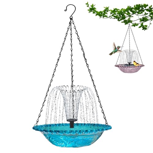 Solar Bird Bath Fountain for Outside - Hanging Metal Solar Fountain Bird Bath with Stand for Garden, Patio, Bird Watching (Blue)