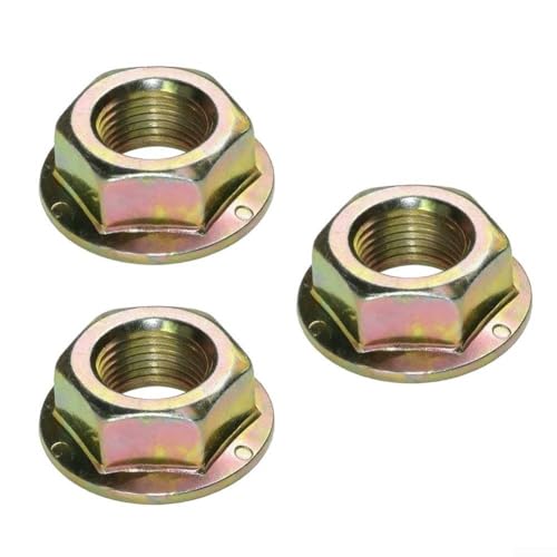 - 3-Piece Replacement Kit: Includes three hex flanged spindle blade nuts for immediate use in routine maintenance or replacement on compatible lawn tractors., Rust-Resistant Carbon Steel: Constructed from carbon steel with color galvanization to withstand moisture, grass clippings, and seasonal exposure without ., ANSI-Compliant Hex Flange Design: Engineered to ANSI standards for precise thread engagement and secure blade retention on RZT50, RZT54, and 600 & 800 Series mowers., Optimized Fit for Lawn Tractor Spindles: Features a 1.083 inch outer diameter and integrated flange to eliminate washer dependency and reduce loosening during high-vibration operation., Field-Tested Reliability: Each nut undergoes dimensional verification and torque testing to support consistent performance across residential and light commercial mowing applications.