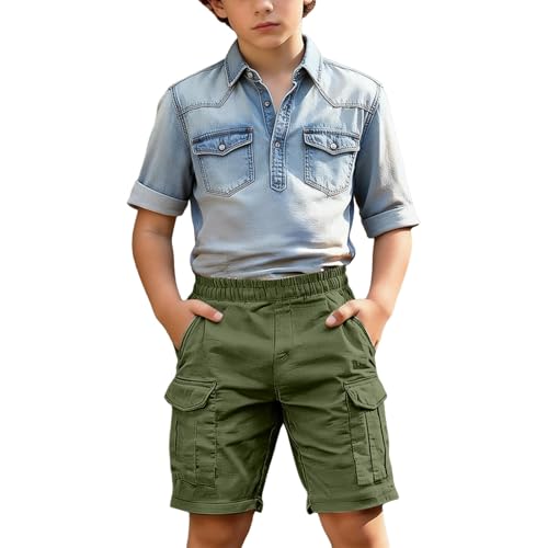Boys Cargo Shorts Outdoor Quick Dry Hiking Shorts Lightweight Athletic Stretchy Short with Pockets (Green, 11-12 Years)