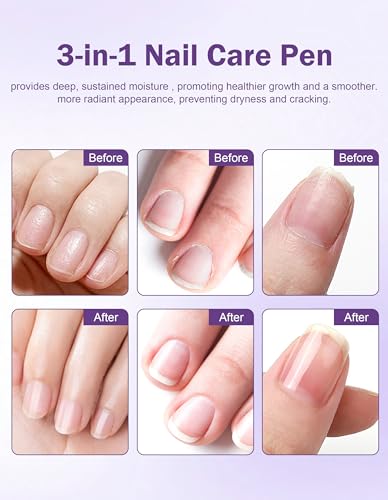 - 1. 3-in-1 All-in-One Nail Care :This 3-in-1 cuticle oil pen combines moisturizing, brightening, and cuticle repair in one compact tool, specially designed to revitalize dry, damaged nails and rough cuticles—perfect for daily nail care and post-manicure maintenance, 2. Precision Ceramic Tip : Equipped with a high-quality ceramic tip for precise, gentle application. It effectively softens and grooms cuticles without scratching or irritating the delicate nail bed,delivering professional-grade care at home, 3. Natural Nourishing Ingredients: Enriched with natural jojoba oil, squalane, and flower seed oil – these powerful nourishing ingredients deeply moisturize dry cuticles, repair cracked and brittle nails, strengthen the nail bed, and enhance the natural shine of the nails, aligning with Canadian consumers' preference for natural and skin-friendly products, 4. Easy & Mess-Free Application :Simply shake the pen for 10 seconds to dispense oil, then glide the ceramic tip over cuticles and nails for quick, mess-free care. Compact and leak-proof, it’s ideal for daily use at home, work, or travel—no extra tools or cleanup needed, 5. Perfect for All Nail Enthusiasts :Lightweight and portable, this cuticle oil pen is suitable for both professional nail technicians and DIY beauty lovers. It helps achieve smooth, radiant, healthy nails with minimal effort and cost, making it a must-have for nail care routines