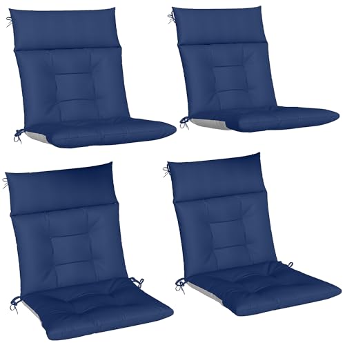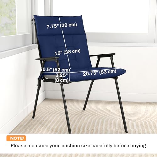 - Complete 4-Piece Value Set: Refresh your entire patio set at once! This pack includes 4 outdoor seat cushions, providing plenty of seating for family BBQ nights or sharing a drink with friends on the deck, Triple-Section Design: Designed for total relaxation, these outdoor chair cushions feature integrated head, back, and seat sections. The 3.1" thick PP cotton filling helps relax your hips and back, All-Weather Durability: The 160g/㎡ polyester fabric is water-repellent and features UV30+ protection to resist fading. These outdoor seat cushions are tough enough for both sun and rain, Double Non-Slip Security: Stop the sliding! Our outdoor cushions feature a specialized anti-slip backing and 4 reinforced ties to lock securely onto your dining or folding chairs. Enjoy a stable, wiggle-free seat, Outdoor Chair Cushions Information: Overall Dimension: 43.9" L x 20.9" W x 3.1" D. Seat Size: 20.9" L x 20.5" W x 3.1" D. Back Size: 20.9" L x 15" W x 3.1" D. Just give them a few days to fully expand after unboxing for maximum cloud-like comfort