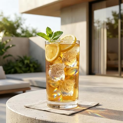 - Mini Highland Cow Ice Cube Mold: Make your drinks extra special with this 3D Cute Highland Cow Silicone Ice Cube Tray. Each ice cube is shaped like an adorable Highland cow, making it the perfect addition to any whiskey, cocktail, or iced coffee., Versatile Multi-Use Silicone Mold: This Novelty Cow Ice Mold is not just for ice! Use it to create chocolates, candies, jellies, soaps, and even butter. A truly versatile 3D Cute Cattle Silicone Ice Tray that brings fun to all your culinary and crafting projects., Reusable Cattle Shaped Ice Mold: Made from BPA-free, non-toxic, and odorless silicone, this 3D Cute Highland Cow Silicone Ice Cube Tray is perfect for creating fun, farm animal-shaped ice. It’s flexible, reusable, and easy to clean, making it a long-lasting addition to your kitchen., 3D Highland Cow Ice Cube Tray Fun Shape: This Cow-shaped Ice Mold features a cute and detailed 3D design that brings personality to your beverages. It's a great way to impress guests at parties or to add charm to your daily drinks., A Great Gift for Animal Lovers: The Mini Highland Cow Ice Cube Mold is a delightful present for whiskey drinkers, animal enthusiasts, or anyone who enjoys fun, farm-inspired decor. Perfect for birthdays, housewarmings, or any celebration.