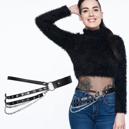 - [ Rest Assured Material ] Punk Waist Belt is designed with metal chain tassels and an adjustable punk belt, fashionable and beautiful, made of faux leather and sturdy material., [ Dressed Comfortably ] Comfortable to wear, light, and wear-resistant, Punk Waist Belt is soft and elastic, excellent and unique, and a fashion accessory to create your thighs., [ Free Size ] Punk Waist Belt is designed with tightness and can be adjusted according to your body shape, convenient to use, and able to be connected to the belt to tighten the body., [ Great Women ] A perfect present idea for girls or women, Punk Waist Belt is great as a birthday, Christmas, or New Year gift, a wonderful and fashionable Christmas gift., [ Extensive Application ] Suitable for Valentine's Day, Wedding Club Dance Festival, Punk Waist Belt is perfect for Parties, Halloween, or Cosplay Costumes, widely used.