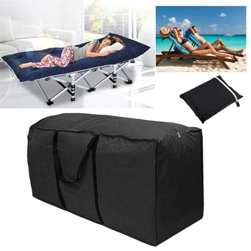 - LARGE CAPACITY STORAGE: Spacious dimensions of 173 x 76 x 51 centimetres (68 x 30 x 20 inches) provide ample room to store patio cushions, bedding, blankets, comforters, and pillows, DURABLE CONSTRUCTION: Made from heavy-duty 210D Oxford cloth material that offers lightweight portability, excellent heat dissipation, and superior firmness compared to standard polyester fabrics, WEATHER RESISTANT PROTECTION: Protects your outdoor furniture cushions, Christmas decorations, and other items from dust, moisture, and the elements when not in use, CONVENIENT FEATURES: Equipped with a large smooth zipper at the top for easy access and reinforced handles with high-density stitching for comfortable carrying and transport, VERSATILE MULTI-FUNCTION USE: Ideal storage solution for patio furniture cushions, seasonal decorations, bedding, and other household items requiring protection during off-season storage