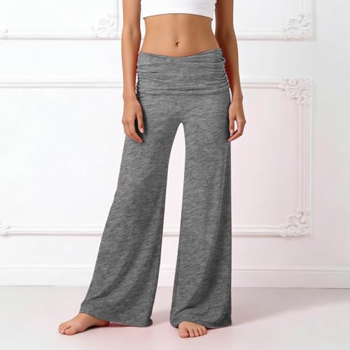 Girls Coral Foldover Yoga Pants Wide Leg Elastic Waist Lounge Pants Loose Fit Mid Rise Stretchy Foldover Trousers Gym Pilates