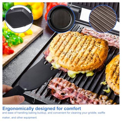 - Package Content: You will get 4 pieces of blue cleaning sponges and 1 piece of black grill scraper in the package. All crafted to simplify grilling and cleaning, ensuring a consistently effortless cooking experience., Excellent Material: Our grill scraper is made from good quality nylon, heat-resistant (withstands 400°F/204°C) and durable, offering an efficient and even clean without melting or deformation., Compatible With: Compatibles with George Foreman. Also ideal for a wide range of outdoor and indoor grills with grooves, ensuring a perfect fit for your grilling needs. Please note that our product is not sponsored or endorsed by, or affiliated with the brands it fits, including George Foreman., Dual Function & Ergonomic Design: The scraper doubles as a spatula and a tough cleaning tool for burnt-on buildup, with a non-slip handle and compact design for easy grip and full grill coverage., Effective Cleaning Sponges: The blue cleaning sponges are made of scouring pad sponge, with a balanced firmness that won’t easily break, gently protecting your hands while effectively removing grease, dirt, and char without scratching or damaging your grill surface.