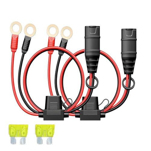 - The 6mm terminal connector set is designed to perfectly GC008 battery chargers, ensuring optimal with various battery types. It supports smart trickle charging and auto adjusts output current to extend battery life. suitable for , , G3500, G7200, , GENIUS1, GENIUS2, GENIUS2X2., Equipped with double 20A fuses that instantly cut off power during overload or short circuits, protecting both batteries and devices. Features 16AWG wiring for excellent conductivity and a 20A current capacity. ., The extension cable easily reaches car or motorcycle battery terminals for convenient charging. Made with copper wiring and double waterproof construction (including protected fuses and plug) for optimal efficiency., Uses high specification 16AWG wiring compared to standard cables, providing better current capacity and heat dissipation. The specializes 20A fuses are designed for high load currents with faster response times and enhanced durability., Package includes: 2xMotorcycle Battery Cable