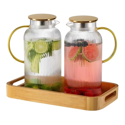 - Glass Beverage Dispenser 1.5L Set - 2 Jugs with Lids for Cold Brew Coffee and Infused Water, Dishwasher Safe & Easy Pour, Modern Pitcher for Iced Tea, Cocktails, Kitchen and Dining Table