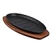 FRCOLOR Cast Iron Non-Stick Steak Pan 10-inch with Wooden Tray Sizzling Grill Plate for Home Kitchen