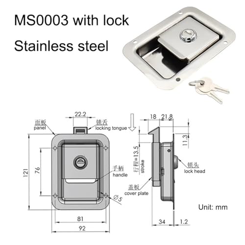 304 Stainless Steel Panel Lock Tool Box Van Industrial Distribution Cabinet Door 1Pcs