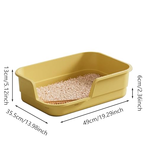 Extra Large High Sided Cat Litter Box, 19.3 Inch Semi Enclosed Litter Pan with Low Entry, Senior Kitty Litter Box for Geriatric Cats, Durable Plastic Easy Clean Indoor Pet Potty (Yellow)