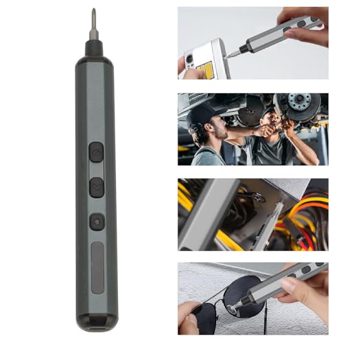 - Versatile Torsion Settings: With 5 torsion settings ranging from 0.25 to 0.35N.m and a manual torsion of 7N.m, this accuracy electric screwdriver allows accurate torsion adjustments to meet various needs., Enhanced Power: Powered by a 350mAh rechargeable lithium battery(built in), this cordless mini electric screwdriver can tighten over 500 screws on a single charging. It boasts a quick 1 hour charging time and a universal Type C charging port., User Friendly Design: Ergonomically designed in a pen shape, this rechargeable electric screwdriver is lightweight, balanced, and comfortable for continuous use. It features an easy to use forward, reverse switch and 4 built in LED lights for illuminating tight spaces., Wide Application Range: Equipped with 64 accuracy screwdriver bits (cross, star, flat, triangle, hex, etc.), this electric screwdriver kit caters to all professional needs. It also includes 16 long bits for complex deep hole applications., Integrated Magnetizer: The integrated magnetizer immediately magnetizes screwdriver bits, while the magnetic pad is perfect for holding tiny screws. The metal tweezers aid in prying and poking, making them ideal for handling microelectronic devices.