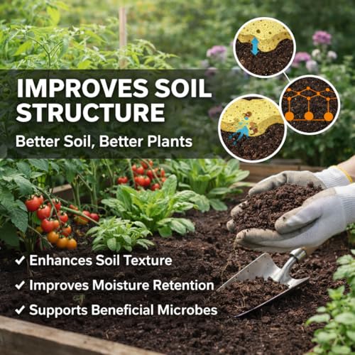 - NUTRIENT RICH SOIL AMENDMENT Premium worm castings help improve soil quality and support healthy plant growth by adding beneficial organic matter to your soil., IMPROVES SOIL STRUCTURE Vermicompost helps loosen compact soil and supports better moisture retention and nutrient availability., SUITABLE FOR MANY PLANTS Great for indoor plants, vegetable gardens, herbs, flowers, raised beds, and container gardening., NATURAL SOIL BOOSTER A gentle soil amendment commonly used by gardeners to enrich potting mixes and garden soil., SIMPLE TO APPLY Mix worm castings into potting soil or sprinkle around plants to improve soil condition and plant performance.