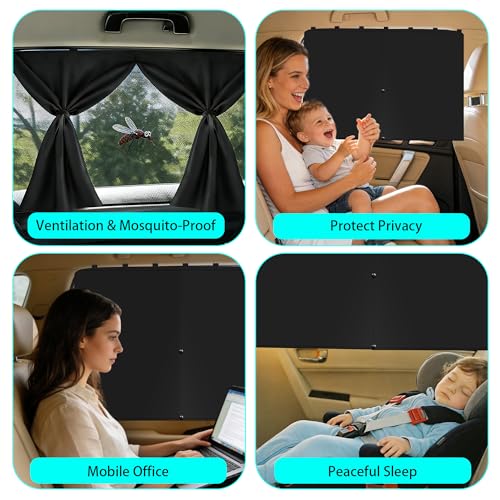 - 【ULTRA 99% UV & GLARE BLOCKING PERFORMANCE】: This car window shade features a premium double-layer sun protection fabric that effectively blocks harmful UV rays and sun glare, making it the perfect car window shade baby for parents who care about their child’s delicate skin. With a translucent mesh and an opaque shading cloth, you can easily adjust the shoulder straps to switch between 3 options: full coverage, semi-shade, or full transparency, meeting your various needs—ideal for use as a rear window sun shade for any family road trip, 【7 POWERFUL MAGNETS DESIGN FOR STEEL FRAMES】: This top of product contains 7 powerful magnets, making it more secure and stronger than the 5 magnets found in ordinary products on the market. This magnetic car window sun shade is designed specifically for steel window or door frames, whether you're using it as a car window screen or a sunshade car accessory, the magnetic hold ensures a secure fit. Please note: magnetic strength may weaken if your car window frame is covered with plastic or rubber—this product is not suitable for frameless windows like Teslas, 【VERSATILE DOUBLE-LAYER DESIGN FOR TRAVEL】: Whether you're looking for a car sun shade for daily driving or a car curtain for added privacy during car camping, this sunshade car cover has you covered. Tie up the opaque layer to enjoy the view through the semi-shade mesh, or use both layers for maximum sun blockage. It’s the perfect sun shade for car lovers who want flexibility and function on the road, 【PERFECT SIZE FOR MOST VEHICLES】: Measuring 26.4" x 18.9" (67 x 48 cm), this car window cover fits a wide range of vehicles including sedans, SUVs, and minivans. However, due to the rectangular shape of the sunshade, we recommend checking your car window dimensions for full coverage. Whether you need a car window screen for your daily driver or a car shade for camping trips, this size is versatile and practical, 【EASY INSTALLATION AND STORAGE】: Installing this car curtain is a breeze—simply open the car door and attach the magnets to the metal frame above the window. No tools or suction cups required. When not in use, the soft fabric folds easily for compact storage in your glove box or center console. Perfect for use as a car window shade for babies, a sunshade for car windows, or even a car window cover for sun protection during long drives