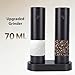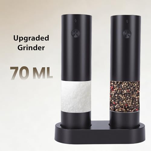 - [ Fast Charging] Experience unparalleled convenience with our electric grinder set that reaches full power in just 5 minutes. this rapid charging technology provides enough power to season an entire meal, making it the perfect smart kitchen solution for busy cooks who value efficiency and performance., [Smart Storage & Long-lasting] Designed with a practical dual-grinder base for organized storage and simultaneous charging. with just 2.5 hours of charging, enjoy up to a month of continuous use. the 300mah battery capacity makes it ideal for households that appreciate both convenience and sustainability., [Versatile Solution] Beautifully packaged, this premium grinder set makes an excellent weddings, housewarmings, or holidays. suitable for home chefs, outdoor enthusiasts, and anyone who appreciates quality kitchen tools. its elegant design and practical functionality ensure satisfaction in any setting., [Precision Ceramic Grinding] Engineered with high-hardness ceramic blades, this grinder delivers consistent, even results for salt, , cumin and various . the included brush ensures optimal hygiene by preventing particle buildup and clogging, guaranteeing flavors every time you use it., [Generous Capacity Design] Featuring an upgraded spacious container that holds more than conventional grinders. perfect for daily cooking, large family gatherings, or entertaining guests. the substantial capacity minimizes frequent refills while maintaining elegant operation at all times.