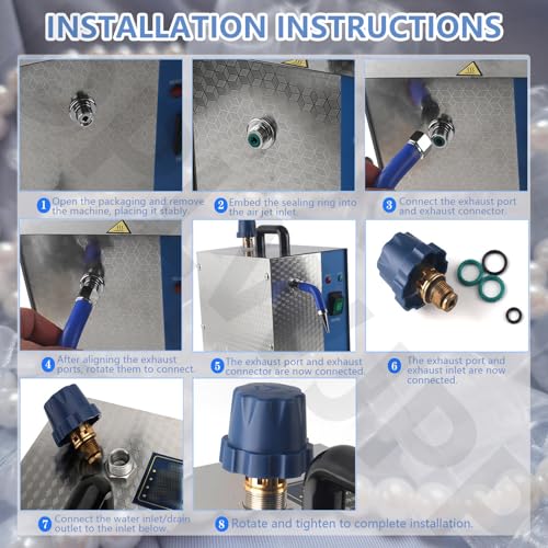 - 【HIGH-TEMPERATURE CLEANING】: Jewellery Steam Cleaner Machine Utilizing 135°C high-temperature steam and a powerful 1300W motor, it generates 4 kg of steam pressure. The steam makes full contact with your jewelry from all angles, effectively removing dirt and grease, even reaching the smallest crevices and holes, ensuring efficient cleaning while conserving water, 【DURABLE STEAM CLEANING】: Jewelry Cleaner Steam Cleaning Machine inner tank, stainless steel bowl, drain pipe, and lid are all made of 304 stainless steel, offering a longer lifespan and greater durability compared to other jewelry cleaners, 【SAFE USE】: Steamer Cleaning Equipment for Jewelry - Before each use, empty the water tank. Then add 1 liter of purified water. Heat the water in the tank to 135°C for 10 minutes to begin cleaning. The foot pedal switch is easy to use, and the indicator light clearly shows the cleaner's status. The included funnel and measuring cup make adding water convenient, 【WIDE RANGE OF APPLICATIONS】: Jewelry Steamer Gem Washer Equipment Not only suitable for jewelry, but also for cleaning watches, hardware, eyeglasses, jewelry, rings, necklaces, coins, etc. Therefore, it is the choice for jewelry workshops and jewelry repair shops, 【IMPORTANT NOTE】: Electric Gem Washer Cleaning Tool After turning off the power, you must fully press the safety valve to release the pressure before turning the device on. The internal temperature of the device is still very high; do not place your hands near the water inlet! Ensure the water in the tank is clean. Do not turn on the device if there is dirty water in the tank