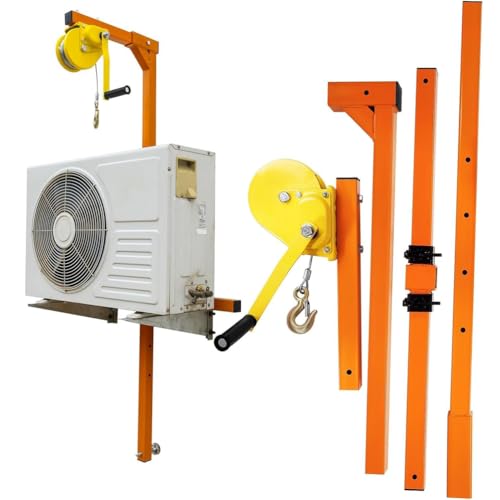 - Triangle Structure & Force Balance: Our Air Conditioner Lifting Device enhances stability by effectively balancing both horizontal and vertical forces, reducing the risk of wobbling or tipping during use. This makes it an ideal tool for HVAC professionals who require reliable support while installing or maintaining air conditioning units, ensuring improved efficiency and safety., High-Quality, Durable Material: Crafted from high-density carbon steel, this Air Conditioner Lifting Device boasts exceptional pressure resistance. Its rust-resistant coating makes it suitable for humid or outdoor settings, providing long-lasting performance. This robust tool is designed for efficient HVAC installations, offering dependable support for your air conditioning units., At our company, we prioritize premium quality tailored to your needs. This versatile product not only enhances your workflow but also guarantees durability and functionality. Whether for home or professional use, it promises satisfaction with every application. Our dedicated customer service team is available to assist you within 24 hours for any inquiries., Flexible Adjustability: The Air Conditioner Lifting Device features an adjustable height range of 94 to 135 cm, accommodating various floor heights and installation scenarios, including tight spaces. Suitable for buildings with 1 to 4 stories, it meets the installation requirements of high-rise structures. It comes complete with a mounting bracket, winch, steel wire rope, and hook, ensuring it's ready for immediate use., Customer Service: Should you have any questions regarding our products, please reach out promptly, and we will respond within 24 hours.