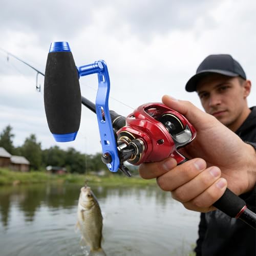 - Lightweight Design: This fishing reel handle is designed with a lightweight aluminum structure and light aircraft alloy to ease hand tiredness, enabling smooth and steady casting control that enhances performance during extended fishing trips on rivers or lakes, Comfortable Upgrade: Replacement fishing reel handles offer a soft foam and EVA grip that cuts down on shock transmission, granting anglers prolonged comfort and reliable handling even during extended fishing trips in challenging conditions, Balanced Force Flow: The reel handle incorporates a design that emphasizes balanced force flow, offering anglers improved control and reduced fatigue during use while ensuring smooth reeling action and tight gear fit for uninterrupted fishing experiences, Streamlined Component Swapping: Fishing reel replacement parts are designed with a modular quick-swap system, enabling anglers to perform fast installs and swaps, ensuring adaptable gear setups and reliable performance with main reels in any situation, Enhanced Torque Stability: The fishing reel handle replacement maintains strong torque while limiting side shake through a three-axis support system, ensuring reinforced mechanical stability for smoother performance during long fishing sessions in both freshwater and saltwater environments, enhancing overall control and comfort when reeling in large catches