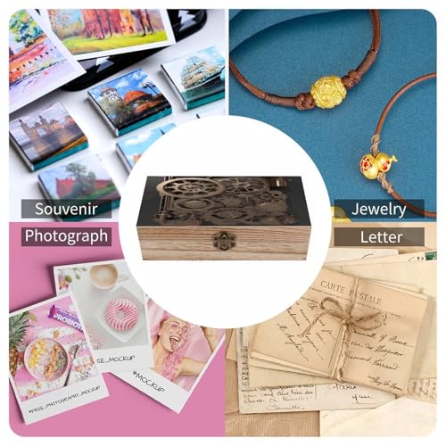 VstaDank Steampunk Mechanical Gears Storage Box Unique Wooden Jewelry Case Rectangular Keepsake Cases with Lock Large Capacity Decorative Boxes for Trinket Pearls Crafts Photos