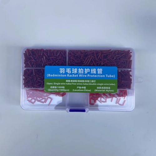 - . 【Compatibility】Universal fit design ensures suitability for most badminton rackets, Badminton Racket Racquet Grommets providing effective string protection and prolonging racket lifespan., . 【Portable and Compact Box】Lightweight and easy to use, this Badminton Grommets with storage box features a compact design for badminton rackets use, . 【Quantity】Contains approximately 1200 pieces, including 700 single line tubes (2.1x13mm), 500 double line tubes (2.6x9mm), and 20 long/short double link nails for comprehensive string protection., . 【[Fine Workmanship】The fine workmanship of this badminton racket stringing clamp ensure careful handling of your strings, comprehensive racket maintenance and string replacement needs., . 【Universal Fit Design】This string protector eyelet works as a versatile application accessory for badminton racket maintenance, fitting standard racket grommet specifications and serving as an essential tool tray storage solution for beginner and casual badminton enthusiasts.