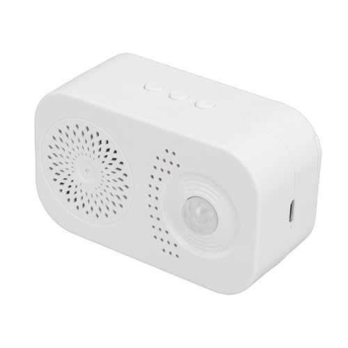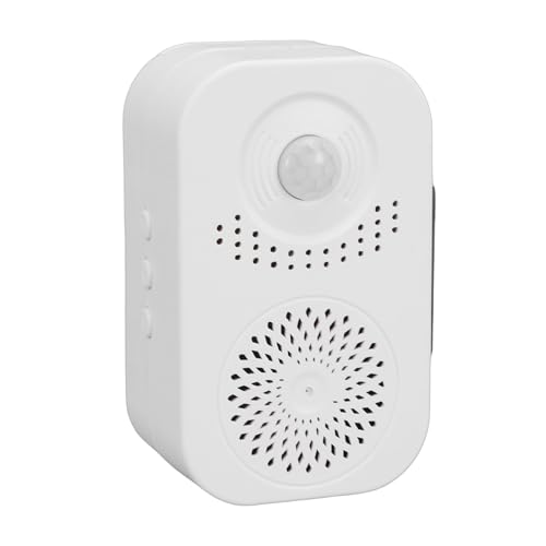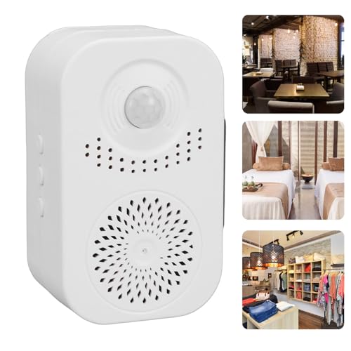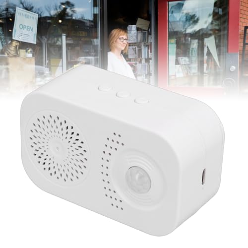 - [Long Battery Life] Motion activated voice player features a high capacity battery eliminating electrical connections with 1 to 3 months operation depending on traffic ensuring reliable no power convenience for your space, [Precise Motion Detection] PIR motion sensor sound player delivers high sensitivity detection within seconds using dual angles 120° wide and 20° narrow for accurate positioning up to 3 4 meters ideal for targeted area monitoring, [Customizable Audio Options] Motion activated sound player includes built in English welcome prompt plus selectable sounds like bird chirps alarms or chimes while supporting 20 second custom voice recording for personalized greetings, [Easy Voice Personalization] Voice recording device allows effortless replaceable voice recording setup making guests feel welcomed through individualized prompts with simple message capture up to 20 seconds long, [Tool Free Installation] Motion activated speaker offers adhesive and magnetic installation options using double magnetic attachment on back and sides enabling straightforward placement without tools for shops homes convenience stores