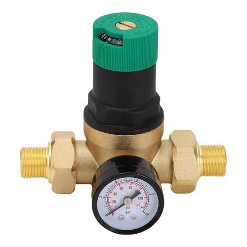 - Pressure Control: Equipped with a pressure meter, this regulator allows you to monitor water pressure from 0 to 60Mpa to ensure optimal performance., Durable Brass Construction: Made from high-strength brass for long-lasting use and oxidation in various environments., Simple Installation: Features standard inlet and outlet ports for easy installation, ensuring you can set it up in no time., Versatile Applications: Ideal for purifiers, heaters, faucets, and more, providing solutions for unstable water pressure and high rates., Efficient Regulation: Designed with a piston mechanism to effectively control water , ensuring a consistent supply in every scenario.