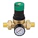 Kelawoly Water Pressure Regulator, Brass Water Pressure Reducer with Meter for Faucet and Heater, 0-140F Adjustable Control (3/4 inch (DN20))