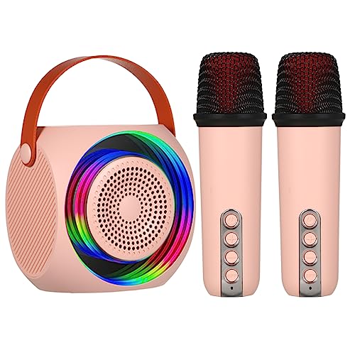 Leftwei Blue Tooth Karaoke Speaker, 2 Wireless Microphones RGB Lights Machine, Rechargeable Singing Speaker with RGB Lights, Ideal for Home Party & Family Singing (Pink)
