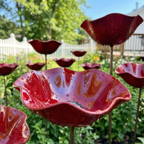 - Bring Your Garden to Life – Add color, movement, and charm with this handmade metal flower stake. Perfect for flower beds, garden borders, pathways, patios, or planters., Dual Function Bird Bath & Pollinator Station – The center bowl holds water for birds, bees, and butterflies. Encourage wildlife activity and help your garden thrive naturally., Handcrafted Metal Flower Art – Each flower is individually shaped and finished, with glossy petals that reflect sunlight, creating a beautiful, artistic focal point., Durable Outdoor Design – Made from sturdy metal with protective finishes, this garden stake withstands sun, rain, and wind season after season, providing lasting beauty., Easy Installation & Gift-Ready – Simply slide the pointed stake into soil—no tools required. Makes a thoughtful gift for gardeners, nature lovers, or anyone who enjoys outdoor decor.