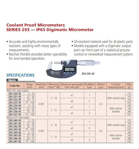 293-340-30 IP65 Digital Outside Micrometer