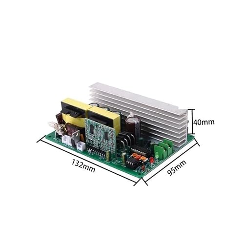 - UNIVERSAL COMPATIBILITY: Converts DC 10-15V battery input to an adjustable AC 110-220V output, delivering a stable 600W modified sine wave for electronic components and DIY testing., BARE PCBA WITH ALUMINUM HEATSINK: Features a 40mm integrated aluminum heatsink designed to manage thermal dissipation during continuous load operation; requires installation in an adequately ventilated enclosure., WIRING & EXTERNAL INTERFACES: The circuit board includes dedicated screw terminals for 12V input and 220V output, alongside specialized 2-pin connectors for an external cooling fan and a rocker switch to support custom builds., MODIFIED SINE WAVE LIMITATION: Outputs a correction wave; strictly not compatible with precision appliances, AC motors, or devices requiring a pure sine wave to prevent hardware malfunction and electrical damage., COMPONENT DIMENSIONS & CONTENTS: The PCB assembly measures 132 x 95 x 40 mm with a factual no-load current of 0.1A. The package contains one inverter module and one pre-wired external power switch.