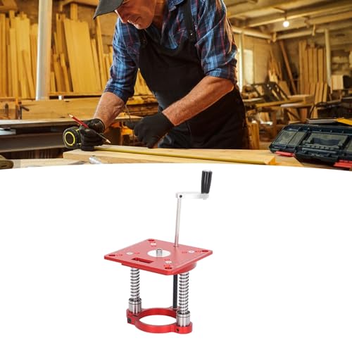 - Precision CNC-Machined Scale: This router table lifting system features a clear, wear-resistant scale crafted through CNC fine processing, allowing accurate height adjustments for consistent cutting depth during woodworking or engraving tasks., Universal Ring Clamping Design: The router table lifting system uses a secure ring clamping method compatible with trimmer motors from 63.5 to 66mm in diameter, fitting most standard routers for versatile workshop use., Multi-Scenario Application: Ideal for home workshops, DIY crafts, and professional woodworking, this milling table lifting system enhances control and precision when routing, carving, or engraving wood, plastic, or soft metals., Durable Anodized Aluminum Alloy: Built from high-strength aluminum alloy with an anodized surface, this router table lifting system resists corrosion, wear, and electrical conduction, ensuring long-lasting performance and smooth operation., Complete Installation Kit Included: Comes with 1 inverted plate, 1 lifting base, 1 hand crank handle, 1 hex wrench, 4 screws, and 1 insertion ring—everything needed for quick setup on compatible router tables or engraving machines.