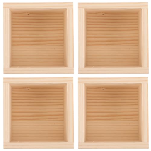 Healvian Japanese Square Wooden Sake Box Set 4Pcs Small Natural Wood Cups for Sushi Parties and Family