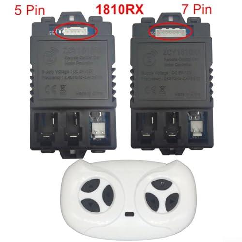 - [FULL CONTROL PACKAGE] The JR1810RX control box includes both a remote control and receiver, tailored specifically for children's electric vehicles with options for both 5-pin and 7-pin setups, offering flexibility in usage., [SEAMLESS OPERATING EXPERIENCE] To initiate connection, simply press both forward and back buttons until the light flashes. This simple process allows to quickly engage with their vehicles without complications., [EFFICIENT FREQUENCY MATCHING] First-time setup requires frequency matching; our user-friendly instructions guide you through this process step-by-step, ensuring reliable connectivity every time you use it., [BATTERY USAGE INSTRUCTIONS] This product operates on two AAA 5V batteries (not included), featuring an installation guide that confirms correct battery positioning with flashing lights as ., [MODEL COMPATIBILITY CHECK] Before purchasing, verify if your vehicle is compatible with either the 5-pin or 7-pin configuration to guarantee proper functionality.