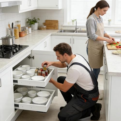 Cabinet Pull Out Shelves | Telescopic Storage Basket | Slide Out Cabinet Organizer - for Home Pantry Laundry Apartment Dorm Corner Desk Dresser