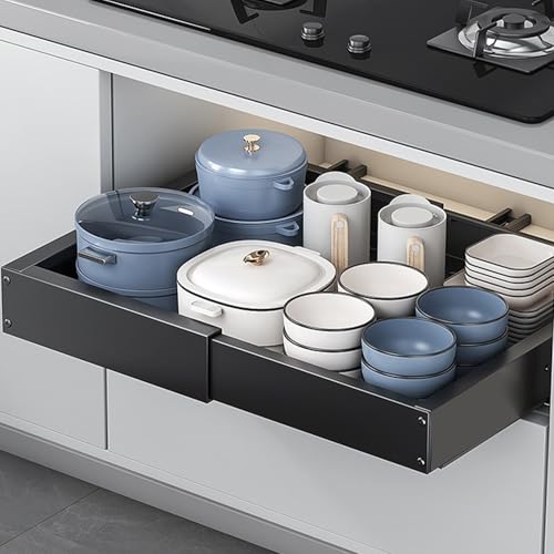 - Telescopic Design: With its telescopic structure, this organizer expands to optimize cabinet depth, creating additional room for storing items like detergents and sponges in tidy spaces, Space Saving Solution: Featuring a design that utilizes under-sink space effectively, the organizer ensures secure storage with designated sections, helping maintain an orderly setup ideal for busy kitchens where efficiency matters most, Neat Storage: With its modular condiment system, this organizer keeps bottles and jars securely arranged, freeing up valuable counter space and maintaining a tidy appearance in any bathroom area, Convenient Access: With its smooth pull-out system and robust thickened metal frame, the storage organizer delivers dependable performance, offering easy access to stored pots and appliances while maintaining an organized and functional kitchen environment, Effortless Install: This storage solution features a no-drill installation method, ensuring compatibility with different cabinet types for quick assembly, enhancing convenience when storing household items neatly and efficiently