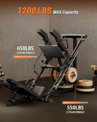 Leg Press Hack Squat Machine Combo for Home Gym, 3-in-1 Leg Press with Adjustable Backrest 45-Degree Lower Body Special with Weight Storage, Home-Gym Power Station for Quads, Hams, Glutes & Calves