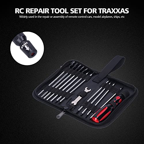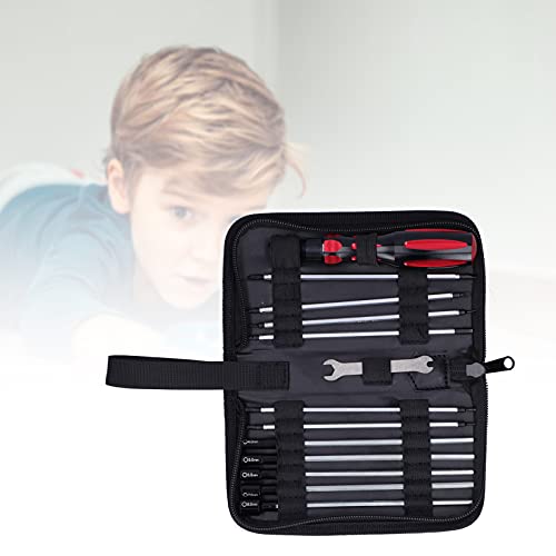 - [PREMIUM STEEL CONSTRUCTION] Our RC tool set features high-grade steel screwdriver bits and wrenches that provide superior durability and strength. The hardened steel construction ensures these tools withstand frequent use without bending or breaking, making them for intensive RC model repairs and maintenance., [ERGONOMIC COMFORT GRIP] Designed with user comfort in mind, each tool features an ergonomic non-slip handle that reduces hand fatigue during extended use. The textured grip provides maximum control and precision, allowing you to work on delicate RC components with confidence and ease., [COMPLETE REPAIR SOLUTION] This comprehensive kit includes hex, nut, slotted, and cross screwdrivers along with wrenches to handle all your RC repair needs. Whether you're working on cars, airplanes, boats or drones, this versatile set has the right tool for every job., [QUICK-CHANGE BIT SYSTEM] The innovative design allows for fast and easy bit changes without additional tools. Each bit locks securely in place to prevent slippage, while maintaining alignment for precise screwdriving in tight spaces common with RC., [PORTABLE STORAGE SOLUTION] The included durable tool bag keeps all components organized and protected. Its compact size makes it easy to store in your workshop or take to races and events, ensuring you always have the right tools wherever your RC hobby takes you.