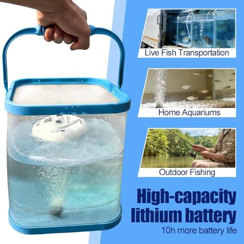 - 【10-Hour Long-Lasting Battery】Equipped with a high-capacity battery, this live bait aerator runs continuously for up to 10 hours on a full charge. Ideal for overnight fishing trips or maintaining a home fish tank, it ensures your bait and fish stay healthy during long transport or extended outdoor use without worrying about power loss., 【Two Speed Power Mode】The live bait aerator maintains basic oxygen level with low-end energy-saving and silent working, and responds to hypoxia emergencies with high-end powerful oxygenation, flexibly adapting to different scenarios., 【Suspension Work】This floating pond aerator automatically stays on the water surface and works stably without any brackets or suction cups. Ideal for still water environments like garden ponds or bait buckets, it delivers uniform oxygenation throughout the water column with zero setup hassle., 【Low Decibel】The pond fountain aerator adopts noise reducing motors and optimized air duct design, with operating noise below 40 decibels. It can be used at night without disturbing sleep, creating a quiet and comfortable environment for fish farming or rest., 【Versatile for All Scenarios】Whether you need a battery powered air pump for fishing, a reliable fish tank aerator for home, or an emergency oxygenation device for power outages, this unit handles it all. Compact and portable, it's the essential live bait accessory for serious anglers and fish keepers alike.