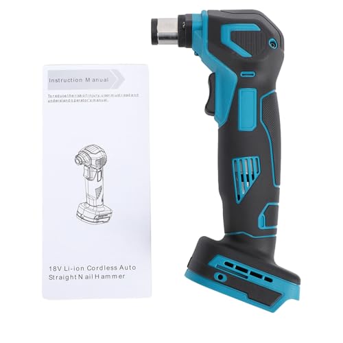 - [Battery Compatibility & Led Light] Powered by a compatible li battery (not included) this rechargeable nail hammer fits bl1830b bl1840b bl1850b bl1860b bl1815 bl1820 bl1825 194309 1 194205 3. the built in led light illuminates work surfaces ensuring precise nail placement in low light conditions., [Magnet Head & Cordless Design] The palm nailer boasts a magnet head and cordless design enabling easy single handed operation even in tight spaces like joist hangers. this practical feature enhances safety and convenience compared to traditional hammers., [Adjustable Angle for Versatility] Featuring a 3 position adjustable angle (0° 45° 90°) this electric framing nailer allows you to drive nails efficiently from different angles. the flexible design makes it perfect for complex projects where precision and adaptability are required., [High Power Brushless Motor] This cordless nail hammer is equipped with a high efficiency brushless motor delivering an impressive 14000 rpm speed. the powerful motor ensures robust performance while maintaining lightweight portability making it ideal for extended use in various woodworking projects., [Lightweight & Durable Construction] Despite its compact size this battery powered nailer is constructed with abs material offering durability and reliability. its lightweight design reduces user fatigue making it a practical choice and diy enthusiasts alike.