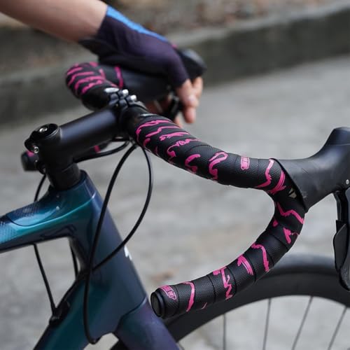 FACULX Handlebar Tape, Anti-Slip PU Silicone For EVA, High Elastic Shock Absorbing, Wear-Resistant Bar Wrap For Road Mountain For Bike Riding, Black(pink-black)