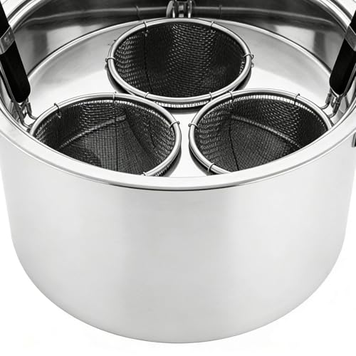 - Faster Pasta Preparation: With its innovative 3-hole design, the Pasta Pot With Strainer Basket minimizes cooking time by efficiently draining water while keeping pasta intact, perfect for creating delicious meals in less time for any occasion, Streamlined Pasta Handling: Featuring three purpose-designed strainers, the pasta pot with strainer insert simplifies the separation of pasta and broth, eliminating flavor mixing and offering dependable performance across multiple cooking settings, including home meals or festive celebrations, Long-Term Use: Designed with a focus on safety and sturdiness, the spaghetti pot with strainer insert utilizes stainless steel for lasting performance, allowing users to cook pasta effortlessly during gatherings or regular weekday meals, Handy to Clean: With a removable filter assembly and mirror-polished inner wall, this pasta cooker with strainer basket reduces cleaning time significantly; as it is dishwasher safe, users can focus more on cooking delicious meals rather than tedious cleanup tasks, Broad Appliance Support: Featuring compatibility with induction cookers, ceramic stoves, electric stoves, and gas stoves, this spaghetti pot with strainer basket ensures dependable performance for boiling and draining pasta while enhancing convenience during everyday cooking routines