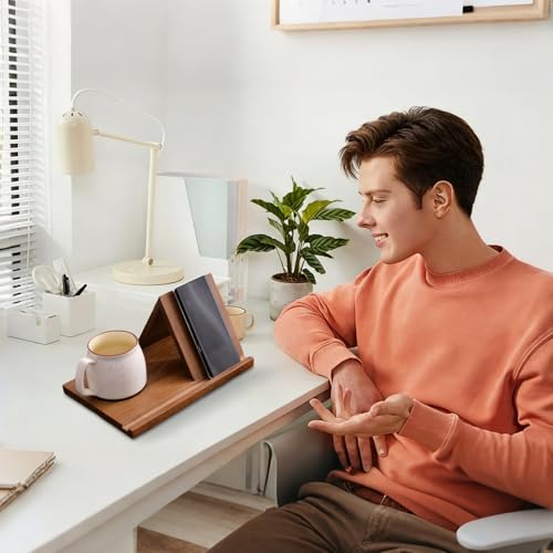 - Secure Book Holding: Featuring an innovative triangular design, the Wood Book Stand keeps books firmly open, reducing wear on bindings and safeguarding pages from damage, making it ideal for extended use in libraries or offices, Functional Design Feature: This wooden book holder includes a practical side cup holder designed to store beverages conveniently. By keeping drinks organized, it prevents messes and enhances your focus during work or study, offering both utility and comfort in everyday use, Space-Saving Design: The wooden cookbook stand features a compact and small size design that integrates seamlessly into different space layouts, making it ideal for small countertops while keeping your kitchen organized and clutter-free during cooking times, Versatile Document Holder: Designed to hold documents, recipes, books, and tablets, this wood book stand for reading enhances accessibility and usability, making it ideal for multitasking or focused activities in spaces like offices or dining areas, Perfect Present Idea: The Kitchen Cookbook Stand Wood serves as an excellent present for family and friends during holidays, birthdays, or special events, enhancing cooking experiences while adding a touch of elegance to any kitchen setting, making it ideal for presenting occasions year-round