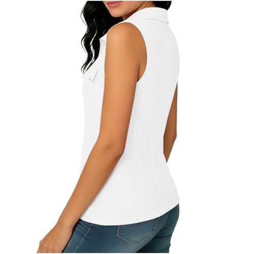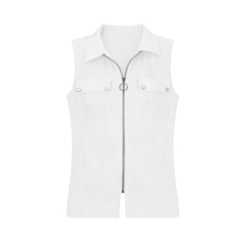 Womens's Sleeveless Golf Shirts Full Zip Golf Jacket Summer Casual Lightweight Vest for Hiking Workout Y2k Clothes White-M