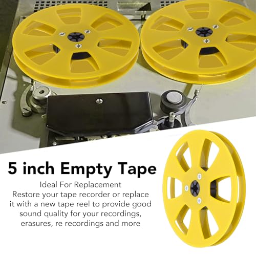 - [Easy Replacement Solution] Quickly replace worn or damaged reels on your reel to reel tape machine with this direct replacement part. the durable construction ensures long lasting performance while maintaining the original equipment specifications, making it ideal for recording, erasing and re recording with professional results., [Enhanced Durability and Performance] Crafted from high grade abs material with 6 strategically placed wind drag holes and a sturdy nab flange, this take up reel offers exceptional rigidity and strength. the optimized design ensures smooth tape movement and consistent performance for professional quality analog recordings every time., [Superior Sound Quality] Experience authentic analog sound with our precision engineered tape reels. the balanced design and quality materials work together to reduce wow and flutter while maintaining perfect tape tension, resulting in exceptional audio performance for both recording and playback applications., [Perfect for Audio Professionals] Whether you're an audiophile, music enthusiast or professional sound engineer, this blank tape reel delivers the reliability and precision required for quality analog recordings. the precisely engineered components minimize vibration and ensure stable tape operation for crystal clear sound reproduction., [Compatible Replacement for Top Brands] This premium empty tape reel is specifically designed as a replacement for teac and studer reel to reel tape players. the 5 inch diameter reel with 1/4 inch compatibility fits perfectly on any open reel deck, making it an essential accessory for maintaining your vintage audio equipment in optimal working condition.