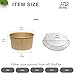 - KRAFT PAPER AND PET LIDS INCLUDED — Each set pairs a sturdy food-grade kraft paper bowl with a matching clear PET lid, giving restaurants, meal prep services, and home cooks a complete takeout container solution without sourcing lids separately., SPILL-RESISTANT SECURE FIT FOR TAKEOUT AND DELIVERY — The snug-fitting clear lid creates a reliable seal to help keep soups, salads, rice bowls, and noodles contained during transport — ideal for food delivery, catering events, and restaurant to-go orders., VERSATILE SIZE FOR MEAL PREP AND PARTY SERVING — At 18/26/32/37/44 oz capacity, these round disposable food containers hold generous single-serve portions of grain bowls, pasta, snacks, or desserts, making them practical for meal prep containers or buffet-style party setups., STACKABLE DESIGN SAVES STORAGE SPACE IN BULK — The low-profile round shape nests securely when stacked, so bulk quantities store efficiently in commercial kitchens, catering vans, or home pantries without tipping or wasting shelf space., CONVENIENT BULK PACKAGING FOR RESTAURANTS AND EVENTS — Available in multi-count packs suited for high-volume foodservice needs; the kraft paper construction gives each container a clean, natural presentation that complements deli counters, market stalls, and pop-up food stands.